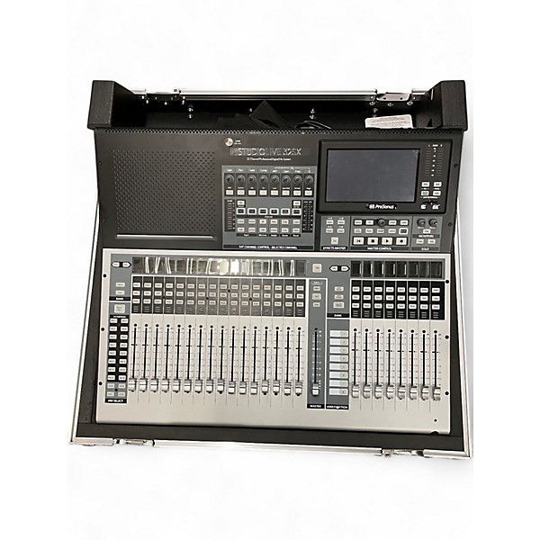 Used PreSonus StudioLive 32SX digital mixer in excellent condition, featuring 32 recallable XMAX mic preamps, 25 motorized faders, and a 64x64 USB audio interface. Built for live and studio use, it offers powerful onboard processing, flexible routing, and a 7" multi-touch screen for intuitive control. This compact 32-channel console delivers premium sound quality and seamless integration with PreSonus software, making it a versatile solution for engineers and producers alike.