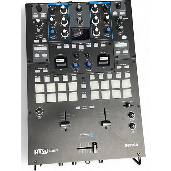 Used RANE Seventy DJ Mixer in excellent condition, offering pro-level performance with dual USB connections, 16 performance pads, and industry-leading MAG FOUR faders. Designed for Serato DJ Pro, this 2-channel battle mixer features robust FX paddles, intuitive layout, and solid steel construction for durability. Perfect for turntablists and club DJs seeking precision and reliability, the RANE Seventy delivers responsive controls and studio-quality sound in a rugged, compact design. Fully tested and ready to elevate any performance.