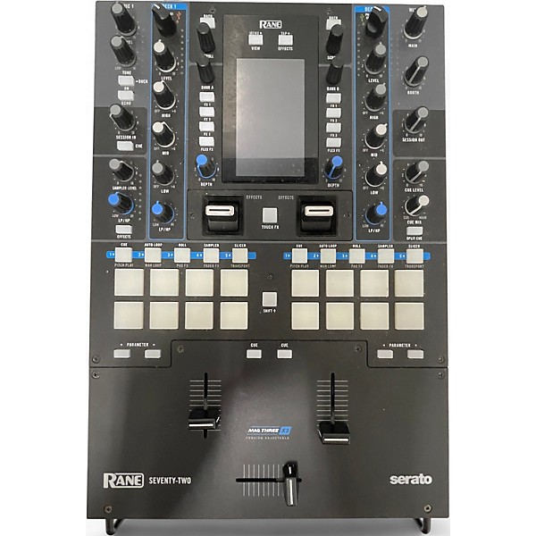 Take your performance to the next level with this used RANE Seventy-Two DJ Mixer in good condition. Featuring dual USB ports, 16 performance pads, a 4.3-inch touchscreen, and solid Mag Three faders, it offers smooth control and deep Serato DJ integration. Built tough for live shows, it supports 2-channel mixing and creative FX customization, making it a top choice for serious DJs who demand reliability and precision.