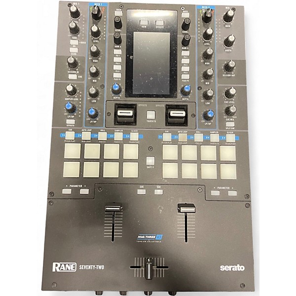 Level up your setup with this used RANE Seventy-Two DJ mixer in great condition, built for performance turntablism and club-ready control. Featuring a 2-channel digital battle layout, dual USB ports for seamless DJ changeovers, high-quality MAG FOUR faders, responsive performance pads, and onboard effects with an intuitive touchscreen interface. Designed for tight scratching, clean sound, and rock-solid reliability, the Seventy-Two delivers pro features in a road-tested, studio-worthy mixer.