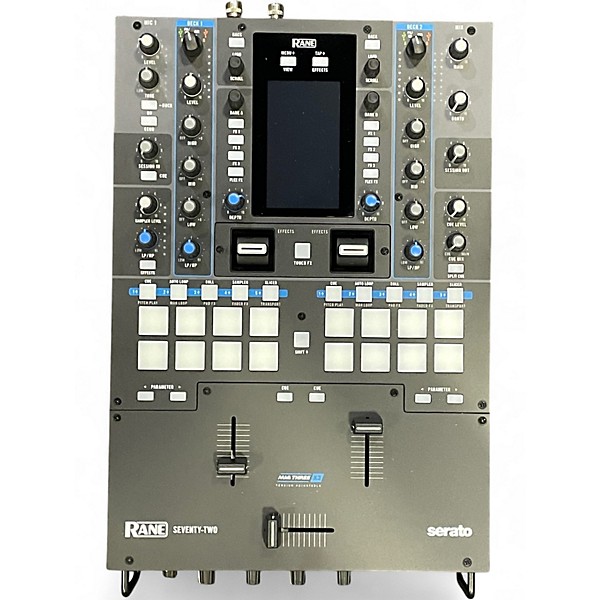 Used RANE Seventy-Two MKII DJ Mixer in great condition, built for pro Serato DJ performance and battle-ready control. Features a 4.3" full-color touchscreen, dual USB ports for seamless DJ changeovers, 2-channel mixer with dual Flex FX, MAG FOUR faders, and 24-bit audio for clean, punchy sound. Ideal for turntables or media players, with responsive performance pads and rugged RANE build quality for the booth or stage.