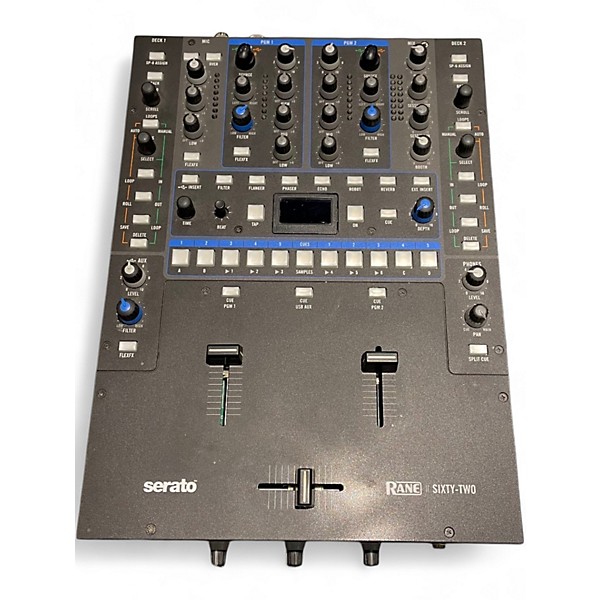 Used RANE Sixty-Two DJ Mixer in good condition, built for performance with Serato DJ integration. This 2-channel mixer features high-quality RANE faders, dual USB connections for seamless DJ changeovers, and flexible inputs for turntables, CDJs, and mic sources. Enjoy powerful onboard effects, cue controls, and rugged, road-ready construction that’s trusted in clubs and battle setups. A reliable choice for scratch DJs and open-format performers seeking pro sound and tight control.