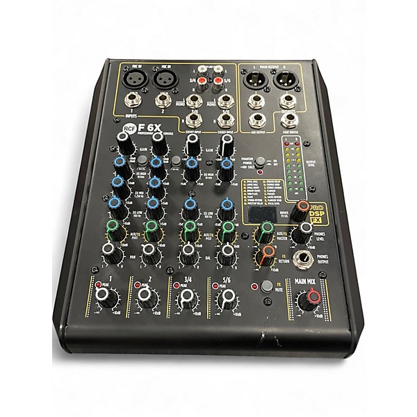Used RCF F 6X Unpowered Mixer in great condition, perfect for small live setups or studio use. This compact 6-channel mixer features two mic/line inputs with high-quality mic preamps, a 2-band EQ per channel, and 48V phantom power. With stereo line inputs and an onboard FX processor offering 16 digital effects, it delivers clear, flexible sound control in a rugged metal chassis. Ideal for musicians, podcasters, and audio enthusiasts seeking professional performance.