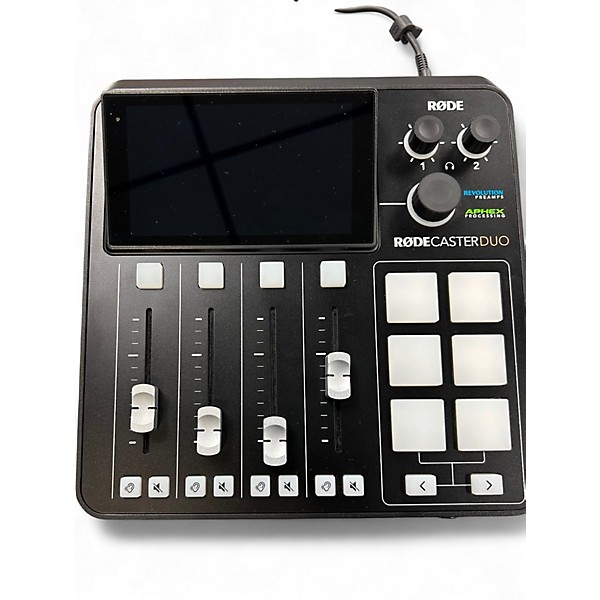Elevate your podcast or stream with this used RØDE Caster Duo unpowered mixer in excellent condition, delivering studio-quality control in a compact desktop format. Featuring dual mic/line combo inputs with high-gain, low-noise preamps, onboard DSP (EQ, compression, noise gate, de-esser, Aphex-style processing), multichannel USB-C audio interface capability, and programmable pads for sounds and cues, it’s a powerful hub for creators who want clean, broadcast-ready results.