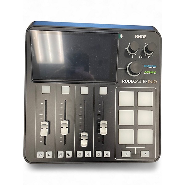 Used RODE RODECASTER DUO Digital Mixer in excellent condition, offering top-tier audio control for podcasters and content creators. Features include dual XLR inputs, high-gain Revolution preamps, integrated APHEX audio processing, and a vivid touchscreen interface. Compact yet powerful, it supports multitrack recording via USB-C and microSD. Ideal for professional-quality sound with intuitive operation, this digital mixer delivers studio-level performance in a portable form factor.