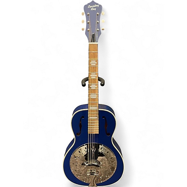 Experience vintage-inspired tone with this Used Recording King RPH-R2 Dirty 30s Blue Acoustic Guitar in great condition. Featuring a compact parlor-size body, solid spruce top, and mahogany back and sides, it delivers warm, punchy sound with maximum portability. The eye-catching blue finish and comfortable neck make it a standout for players of all levels. With reliable build quality and classic 25.4" scale length, this guitar is perfect for songwriting, gigging, or jam sessions.