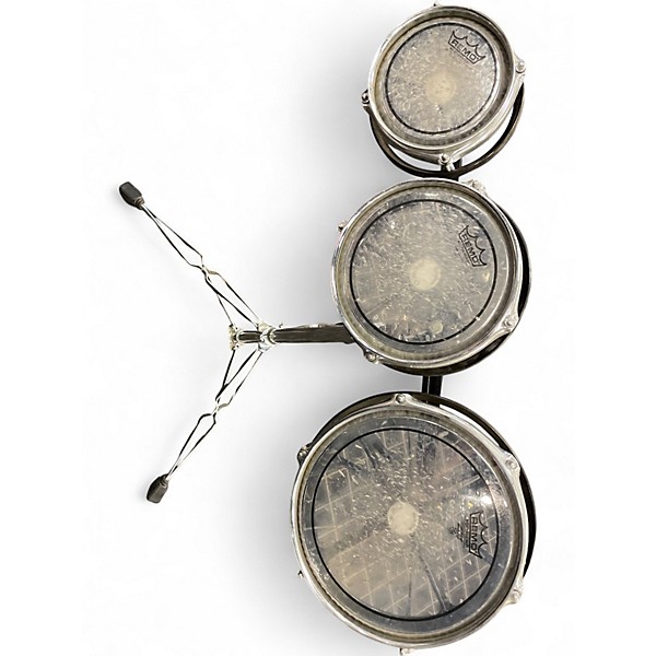Used Remo 3 Piece Rototom Black and Silver Roto Toms