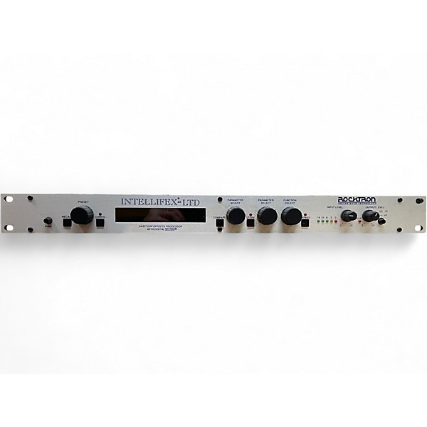 Used Rocktron INTELLIFEX-LTD Multi Effects Processor in great condition, built for studio-quality guitar and rack rigs. This classic 1U rack unit delivers lush reverb, chorus, delay, pitch effects, and more with renowned Rocktron clarity. Features include 24-bit digital processing, MIDI In/Thru for program changes and control, stereo inputs/outputs, and easy preset recall for consistent live performance. A powerful, reliable effects engine for players who want pro rack tone.