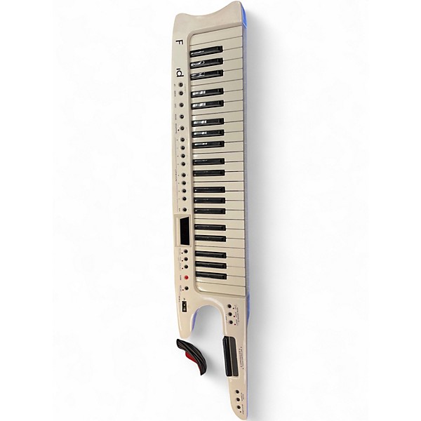 Used Roland AX-7 portable keyboard in fair condition. This 45-key MIDI controller offers aftertouch, pitch bend ribbon, and modulation bar for expressive performance. Lightweight and designed for stage use, it connects easily via MIDI to your favorite sound modules. A great choice for musicians seeking a classic keytar experience with essential features. Some signs of use, but fully functional and ready to play. Powered by batteries or optional adapter (not included).