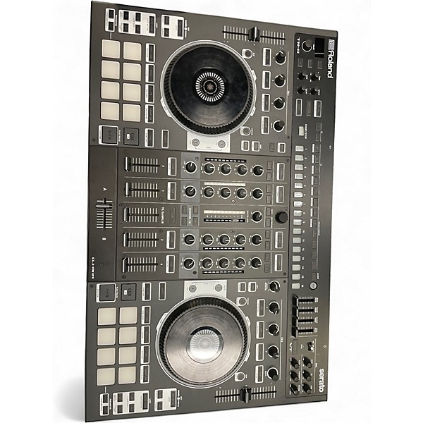 Used Roland DJ-808 USB Turntable in excellent condition, featuring a 4-channel mixer, built-in drum sequencing with TR-S, and USB and MIDI connectivity for seamless integration with Serato DJ. This powerful controller includes high-performance platters, vocal FX, and Serato Pitch 'n Time DJ support, making it perfect for studio and live performance. All knobs, faders, and jog wheels function flawlessly, offering a professional DJ experience backed by Roland's legendary build quality.