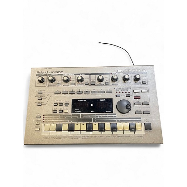 Used Roland MC-303 Production Controller in good condition, a classic groovebox built for instant dance music creation. Features onboard synth sounds and drum kits, pattern-based sequencing, real-time knobs and sliders, and performance controls for live tweaking. Includes a built-in 2-track phrase sequencer with multiple parts, MIDI In/Out for controlling other gear, and stereo audio outputs plus headphone out. A great hands-on centerpiece for EDM, techno, and hip-hop workflows.