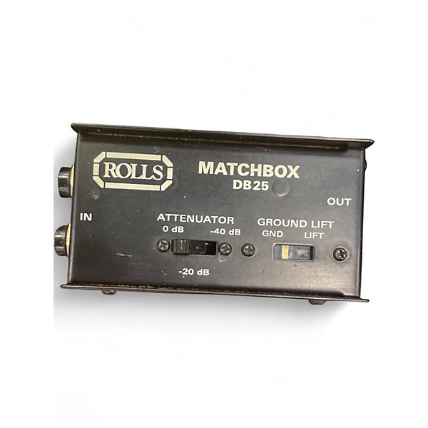 The Rolls DB25 Matchbox Direct Box is a dependable passive DI box designed for clean signal conversion with a durable metal chassis. Ideal for connecting instruments to mixers, it features a 1/4" input, XLR output, and a ground lift switch to eliminate hum. This used unit is in good condition, showing light cosmetic wear but fully functional—perfect for studio or stage use where consistent audio performance is essential.