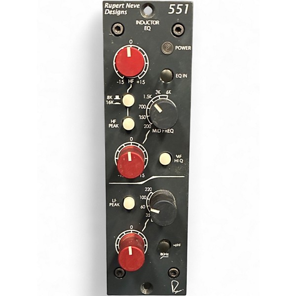 Used Rupert Neve Designs 551 Inductor EQ rack module in great condition, delivering classic Neve-inspired tone with modern reliability. Featuring an inductor-based 3-band EQ with selectable high and low shelves plus a swept mid band, it offers smooth musical shaping for tracking or mixing. Built with premium components and a rugged metal chassis, the 551 provides rich character, tight lows, and silky highs—ideal for vocals, guitars, drums, and buses in any studio rack.
