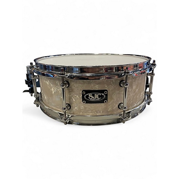 Used SJC Drums 13X5 Custom Snare Vintage White Pearl Drum