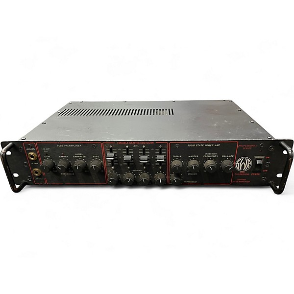 Used SWR SM-400S in good condition, a classic all-tube bass amplifier head prized for its warm, punchy tone and studio-ready clarity. Rated at 400W RMS at 4 ohms (approx. 240W at 8 ohms), it features a tube preamp, semi-parametric EQ, bass/treble controls, effects loop, headphone out, and balanced DI for direct recording or live sound. A reliable workhorse for stage or studio rigs.