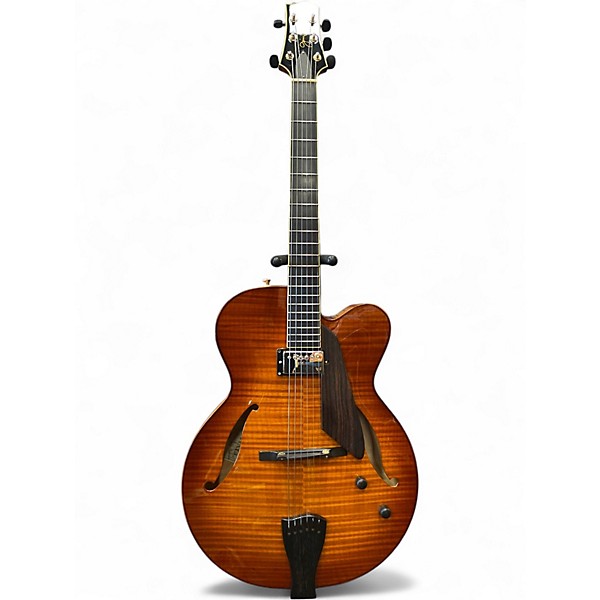 Experience legendary jazz tone with this used Sadowsky Guitars Jim Hall Signature hollow body electric guitar in Natural finish, in great condition. Designed for warm, articulate clarity, it features a resonant hollow body, comfortable set neck, smooth rosewood fingerboard, one humbucking pickup in the neck position, and intuitive volume and tone controls for expressive dynamics. Lightweight and responsive, it delivers rich cleans, singing leads, and superb note definition—an inspiring, stage-ready instrument for discerning players.