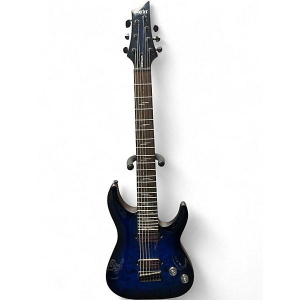Used 2010s Schecter Guitar Research omen elite 7-string Trans Blue Solid Body Electric Guitar
