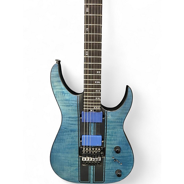 Used in excellent condition, this Schecter Guitar Research Banshee GT Blue solid body electric guitar features a fast-playing roasted maple neck, 24 extra-jumbo frets, and a lightweight alder body for killer tone and comfort. It's equipped with active EMG humbuckers for aggressive, high-output sound and a Floyd Rose 1500 Series tremolo for precise dive-bombs and stability. Ideal for metal and hard rock players, this Banshee GT delivers speed, tone, and performance.
