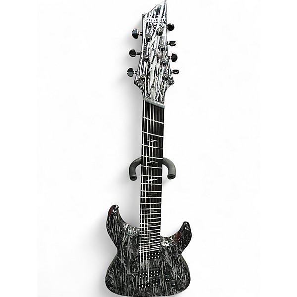 Unleash massive tone with this used Schecter C-1 Silver Mountain 7-string electric guitar, built for high-gain performance. Featuring a mahogany body, ultra-access neck-through construction, and a stunning silver crackle finish, this guitar offers powerful sustain and smooth playability. It comes loaded with aggressive-sounding Schecter USA humbuckers, 24 extra-jumbo frets, and a fast ebony fretboard for precise, effortless shredding. In great condition, it's a metal-ready machine built to inspire.