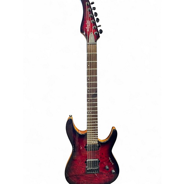 Turn up the heat with this used Schecter Guitar Research CR6 in Black Cherry Burst, a sleek solid-body electric built for modern tone and fast playability. In great condition, it features a contoured double-cutaway body, comfortable bolt-on maple neck, 24-jumbo-fret rosewood fingerboard, dual high-output humbuckers, master volume and tone controls, and a rock-solid hardtail bridge for tight tuning stability. A versatile choice for metal, rock, and beyond.