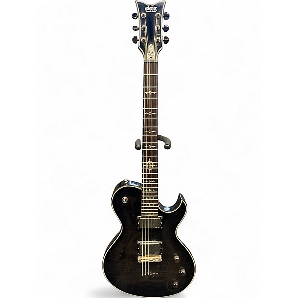 Used Schecter Guitar Research Damien Elite Solo Trans Black Solid Body Electric Guitar