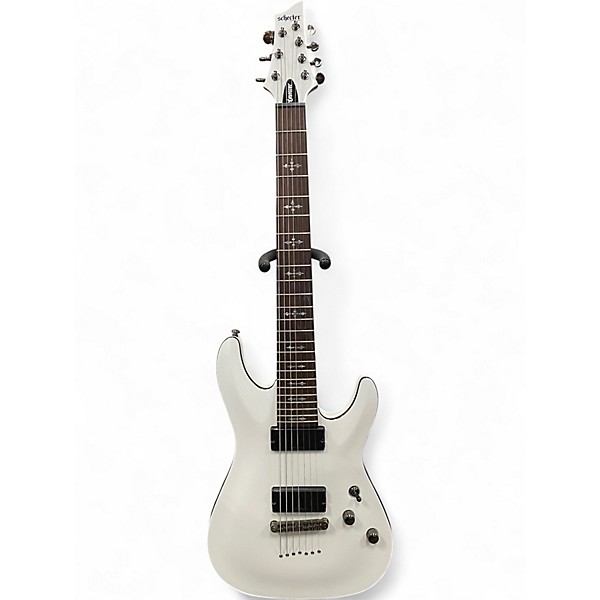 Used Schecter Guitar Research Demon 7 String White Solid Body Electric Guitar