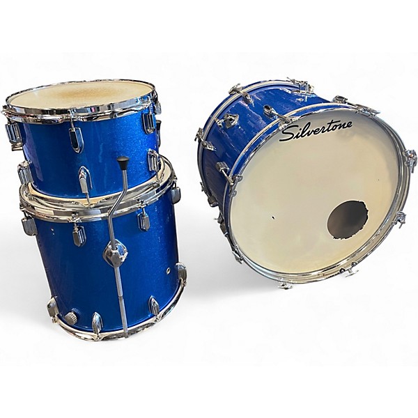 Used 1970s Silvertone 3 Piece Sparkle blue Drum Kit