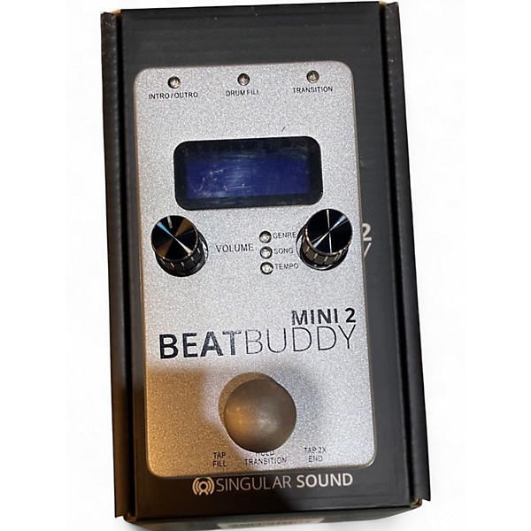 Used Singular Sound BeatBuddy MINI 2 Metronome in great condition offers real-time drum beats with hands-free control, ideal for solo practice or live performance. Compact yet powerful, it features 9 drum sets, 24 genres, and over 200 styles. Easy-to-use with a clear LCD screen and responsive footswitch, it delivers professional-quality sound in a pedal-sized design. Perfect for guitarists and musicians seeking dynamic rhythm support without complicated programming. Powered by 9V DC (not included).