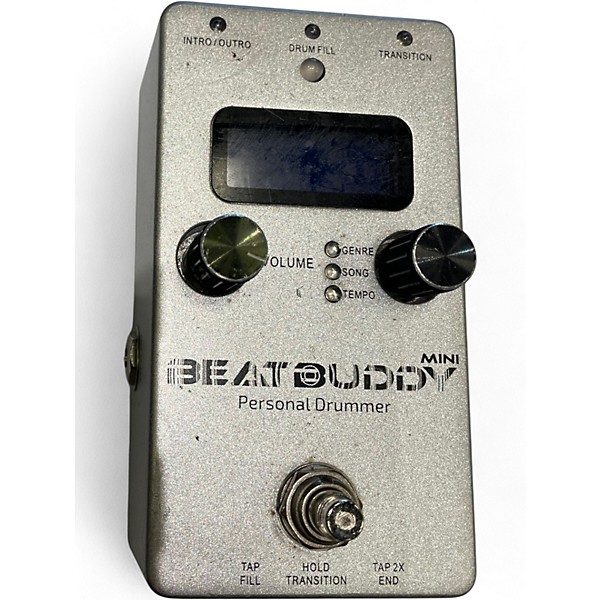 The used Singular Sound BeatBuddy MINI is a compact drum machine pedal in good condition, offering realistic drum beats with tap tempo and visual metronome features. It includes over 100 songs and 24 drum sets, all accessible via its simple knob interface and footswitch control. Ideal for practice or performance, it delivers premium sound in a rugged design, powered by 9V DC. A great tool for guitarists seeking rhythm support on stage or in the studio.
