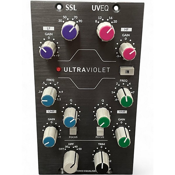 Used Solid State Logic Ultraviolet EQ 500 in great condition, delivering the signature SSL “sheen” in a compact 500-series stereo equalizer. Features 4-band EQ with musical, proportional-Q curves, high and low shelves plus two sweepable mid bands, and stepped controls for precise recall. Designed for tight stereo matching and fast workflow, it’s ideal on mix bus, drums, guitars, and vocals, bringing polished clarity and modern punch to any 500-series rack.