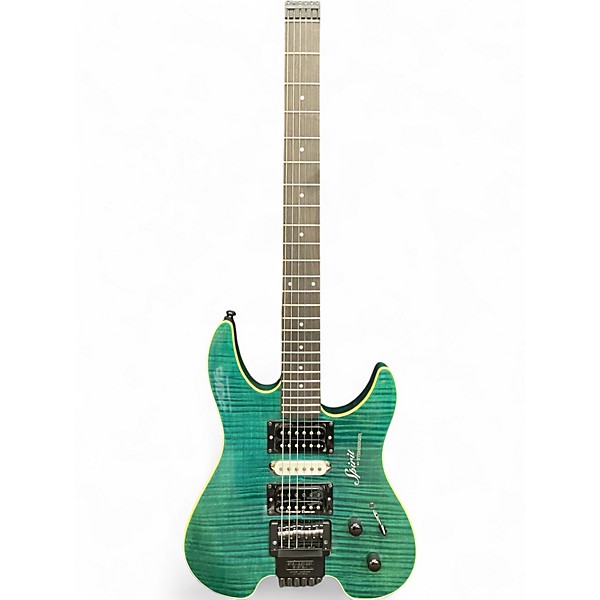 Vintage 1990s Spirit GU7R GREEN FLAME MAPLE Solid Body Electric Guitar