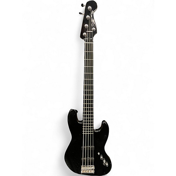 Used Squier Deluxe Jazz Bass Active V 5 String Black Electric Bass Guitar