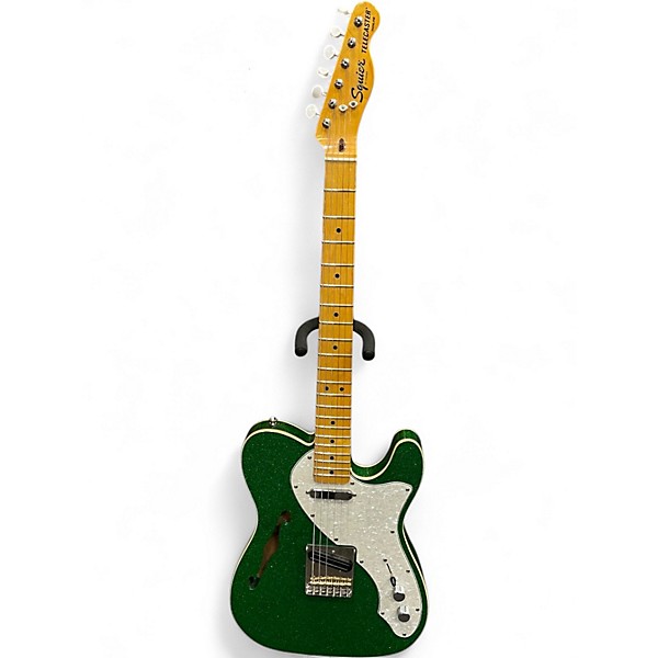 This Used Squier Partscaster Solid Body Electric Guitar features a striking sparkle green finish and is in great condition. Built with a solid wood body, maple neck, and rosewood fingerboard, it delivers classic tone with modern flair. Outfitted with three single-coil pickups, a 5-way switch, and a vintage-style tremolo bridge, it's perfect for versatile playing styles. Ideal for players seeking standout looks and reliable performance at a great value.