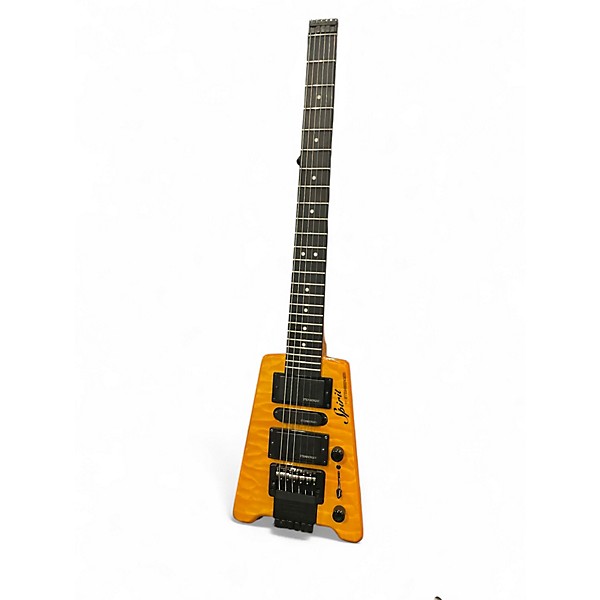 Experience bold tone and modern design with this Used Steinberger SPIRIT GT-PRO Yellow Tiger electric guitar in Excellent condition. Featuring a comfortable maple body, bolt-on maple neck, rosewood fingerboard, and the iconic Steinberger patented headless design with locking R-Trem tremolo system, it's lightweight and perfectly balanced for performance. Equipped with an HSH pickup configuration for versatile sound across genres, this striking axe delivers powerful playability in a sleek, compact package.