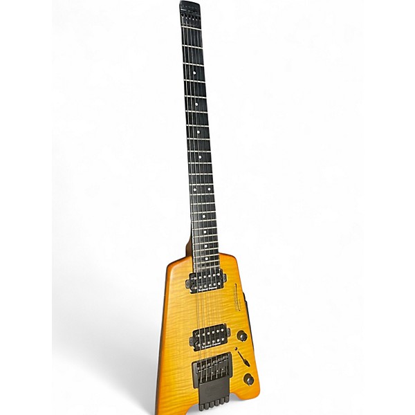 In great condition, this used Steinberger SYNAPSE SS 2FP Trans Amber delivers headless performance with striking figured-top style and rock-solid tuning stability. Featuring a compact, ergonomic solidbody design, a fast-playing neck, and a versatile HSS pickup layout with a 5-way selector, it covers everything from crisp cleans to punchy high-gain leads. The Trans Amber finish pops under stage lights while the minimalist hardware keeps it lightweight, balanced, and ready to gig or record.