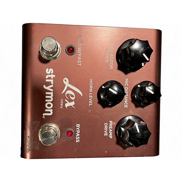 Used Strymon Lex V1 Rotary Speaker Simulator in Good condition, offering authentic rotary speaker tones with adjustable mic distance, horn speed, and preamp drive. Stereo input/output and expression pedal control provide added versatility. Built in the USA and renowned for rich, 3D modulation, this compact pedal is ideal for achieving vintage Leslie-style effects in a modern, pedalboard-friendly format. Perfect for guitarists seeking lush modulation with studio-quality sound and performance.