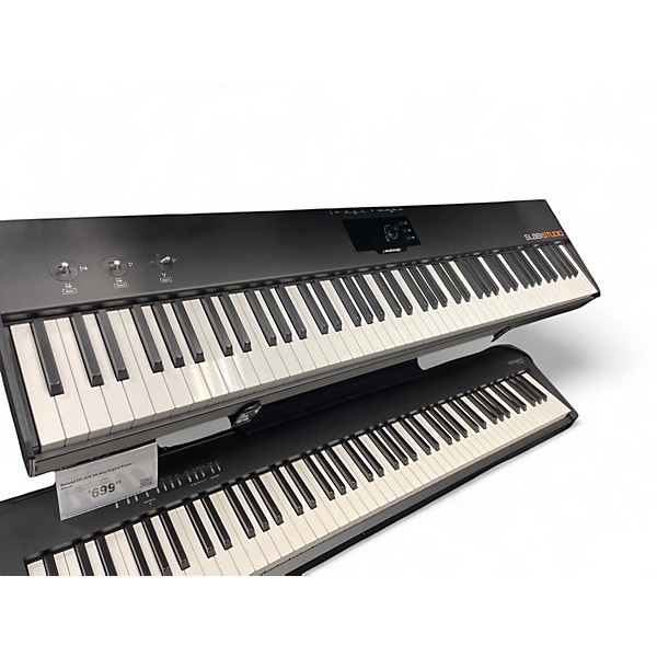 Used Studiologic SL88 STUDIO MIDI Controller in great condition—an expressive 88-key graded hammer-action controller built for serious players. Featuring high-resolution key sensing, 3 programmable joysticks, MIDI DIN and USB connectivity, and a bright onboard display for fast splits, layers, and setup control. Works seamlessly with DAWs and virtual instruments, delivering a realistic piano feel with flexible performance controls in a sleek, stage-ready chassis.