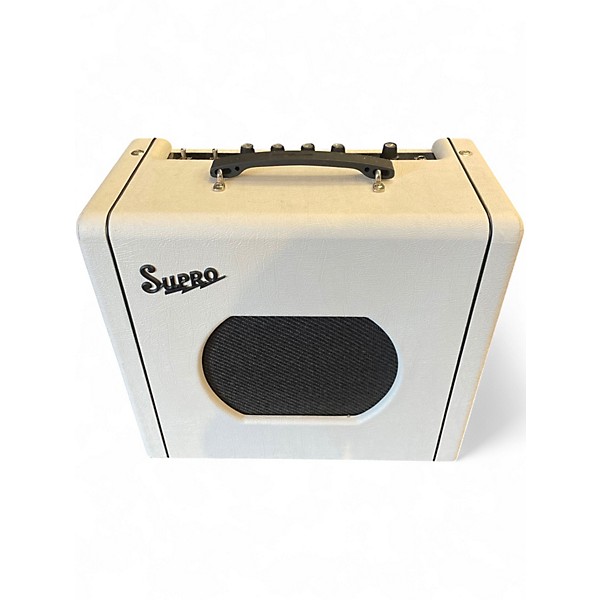 Used Supro 1821R Delta King 10 guitar combo amp in Good condition, delivering classic Supro grit in a compact, gig-friendly size. Features a 10-inch speaker and all-tube tone with punchy cleans, rich mids, and smooth breakup that shines for blues, rock, and roots styles. Simple controls make dialing in great sound fast, whether practicing at home or recording. A solid, road-proven choice for players who want vintage-inspired character without the bulk.