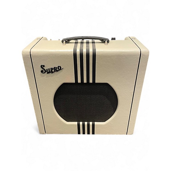 Get vintage-flavored tube punch in a compact gig-ready package with this used Supro Delta King 12 combo amp in good condition. Powered by an all-tube design delivering 15 watts through a 12-inch speaker, it serves up rich cleans, gritty overdrive, and classic Supro character with responsive dynamics. Onboard reverb adds depth, and straightforward controls make dialing in tones fast for blues, rock, and roots styles—perfect for studio or stage.