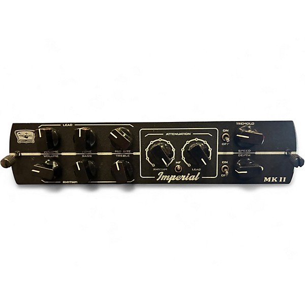 Used Synergy Imperial MKII tube guitar amp head in excellent condition, delivering rich, touch-sensitive British-style tones from sparkling cleans to classic crunch. Powered by all-tube circuitry with dual channels and a responsive EQ, it’s built for studio detail and stage punch. Loaded with two 12AX7 preamp tubes and two EL84 power tubes, it provides 15 watts of dynamic output and pairs easily with your favorite speaker cabinet for inspiring, harmonically complex sound.
