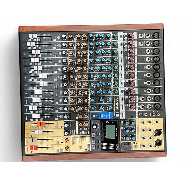 Used TASCAM MODEL 16 Digital Mixer in excellent condition. This versatile hybrid mixer offers 14 analog inputs, 16-track SD card recording, USB audio interface capability with 16-in/14-out, and a 7-band graphic EQ. Ideal for live performance, podcasting, or studio use, it features high-quality preamps, one-knob compressors, and onboard effects. With its durable build and intuitive layout, the MODEL 16 delivers professional sound and flexibility whether you're at home or on the road.