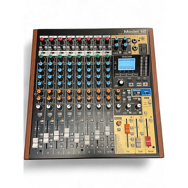 Used TASCAM Model 12 unpowered mixer in great condition, ideal for home studios, live streaming, and small gigs. This compact 12-channel mixer combines analog warmth with modern workflow, featuring 10 mic preamps, 1-knob compression on select channels, 3-band EQ, built-in effects, and flexible routing. Record and playback via integrated 12-track SD recorder and USB audio interface for seamless DAW integration. Reliable, intuitive control for mixing and multitrack production.