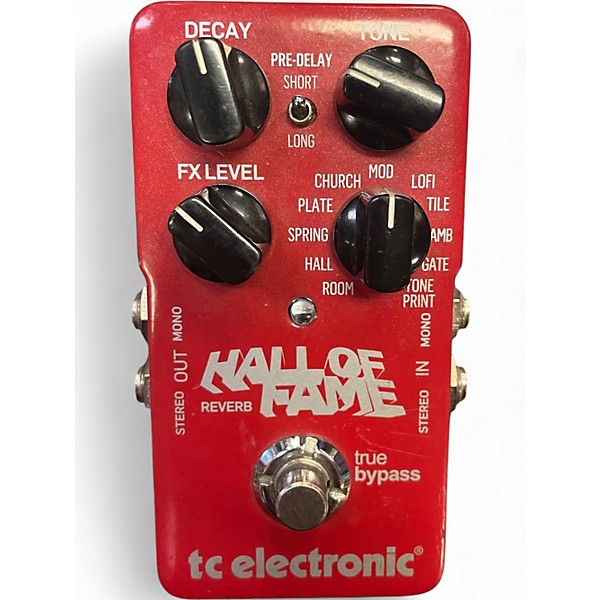 Add lush ambience to any rig with this used TC Electronic Hall of Fame Reverb pedal in good condition. Featuring multiple studio-quality reverb types (including Hall, Room, Plate, Spring, Mod, and more) plus TonePrint support, it delivers everything from subtle space to huge atmospheres. Onboard controls for Decay, Tone, Level, and Reverb Type make dialing in sounds fast, and the rugged compact stompbox format fits easily on most pedalboards.