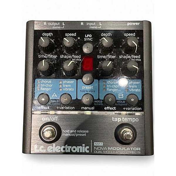The TC Electronic NM1 Nova Modulator is a powerful multi-effects processor offering nine modulation effects, including chorus, tremolo, flanger, and phaser. Designed for both stage and studio use, it features dual engines, tap tempo, and stereo ins/outs for versatile sound shaping. This used unit is in good condition, with all functions working properly. Ideal for guitarists and producers seeking high-quality modulation effects in a compact and reliable pedal format.