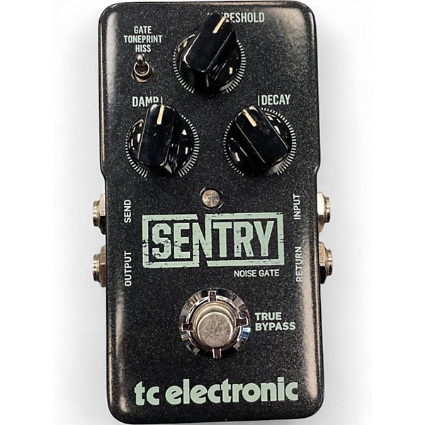 Tame hum and hiss with this used TC Electronic Sentry Noise Gate in Good condition, a compact, road-ready pedal built for transparent, hard-hitting noise control. Featuring advanced multiband gating, Threshold, Damp, and Decay controls, plus a TonePrint slot for custom settings, it keeps your tone intact while silencing unwanted noise. Stereo in/out and a dedicated send/return loop make it easy to gate only noisy pedals in your chain. Powered by standard 9V DC.