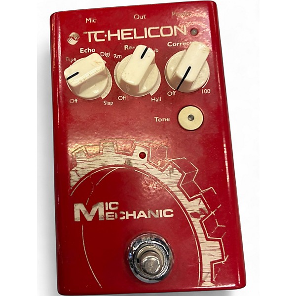 Used TC Helicon VoiceTone Mic Mechanic Vocal Processor in fair condition, perfect for adding pro polish to live vocals. This compact stompbox delivers studio-style reverb, adaptive tone, and pitch correction with simple one-knob control and an on/off footswitch. Built with balanced XLR mic input and XLR output for easy stage or studio hookup, plus phantom power support. A great, affordable way to upgrade your vocal sound.