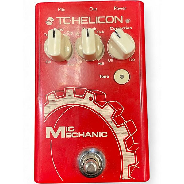 Used TC Helicon VoiceTone Mic Mechanic Vocal Processor in great condition, delivers professional vocal enhancement with reverb, delay, and pitch correction. Designed for live performance, it features a rugged metal housing, XLR input/output, and provides studio-quality effects in a simple stompbox format. True bypass ensures clean signal when off, with settings easily adjusted via intuitive knobs. Ideal for singers seeking clear, dynamic vocals on stage with minimal setup. Operates on standard 9V DC power.