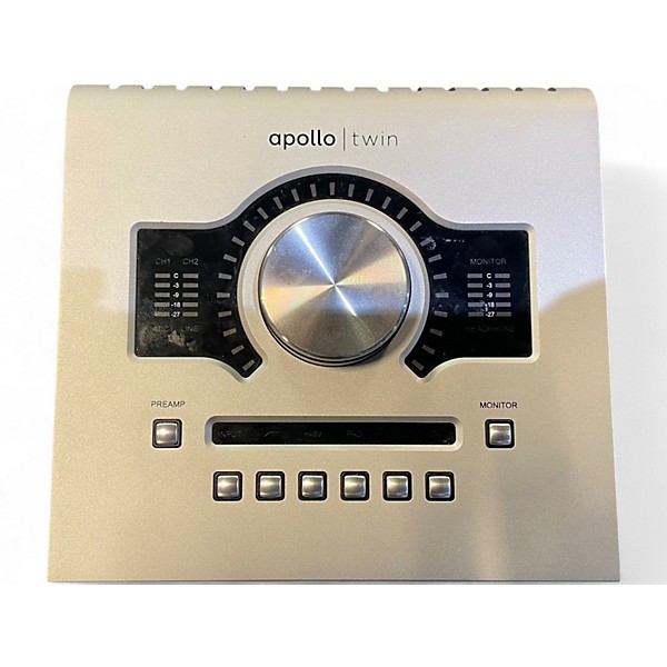 Used Universal Audio Apollo Twin Heritage Edition USB 3.0 Audio Interface in excellent condition, offering elite-class A/D and D/A conversion, real-time UAD plug-in processing, and two Unison-enabled mic preamps. Compatible with USB 3.0 on Windows systems, this desktop interface delivers professional studio-quality recordings with near-zero latency. Ideal for musicians, producers, and podcasters, it combines legendary analog sound with modern digital flexibility, all housed in a sleek, durable design built for serious creators.