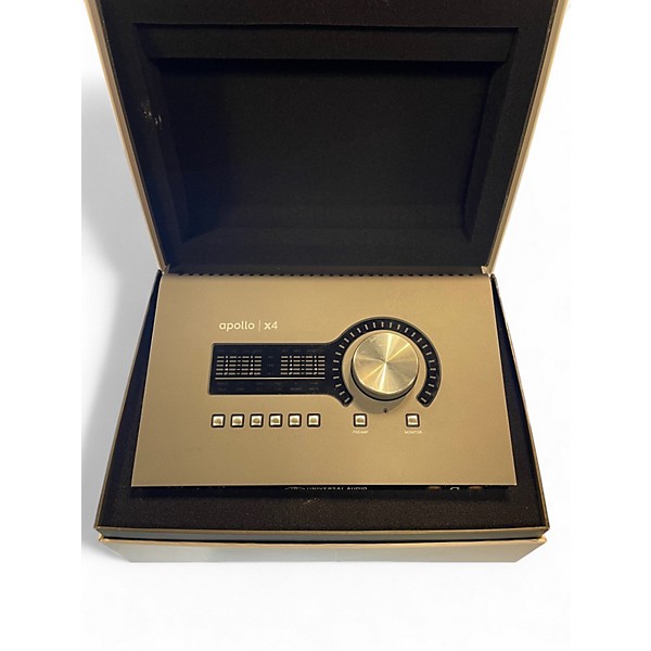 Used Universal Audio Apollo X4 audio interface in good condition, offering elite-class A/D and D/A conversion, QUAD Core UAD processing, and four Unison-enabled preamps for authentic analog emulations. Includes Thunderbolt 3 connectivity for ultra-low latency and real-time plugin performance, supporting up to 127 dB dynamic range. Ideal for professional music production, mixing, and tracking, the Apollo X4 delivers the power and fidelity of a commercial studio in a sleek desktop unit.