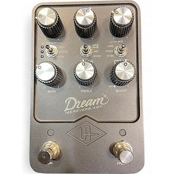 Used Universal Audio UAFX Dream ’65 Guitar Amp Preamp in great condition, delivering authentic mid-’60s American tube-amp tone in a compact pedal. Features premium amp modeling, three classic speaker/room voicings, and built-in spring reverb and tremolo for rich, dynamic feel. Rugged metal enclosure with standard 1/4" instrument I/O, plus stereo output for wider rigs, and simple front-panel controls for quick dialing. Ideal for direct recording, live boards, or amp-like response anywhere.